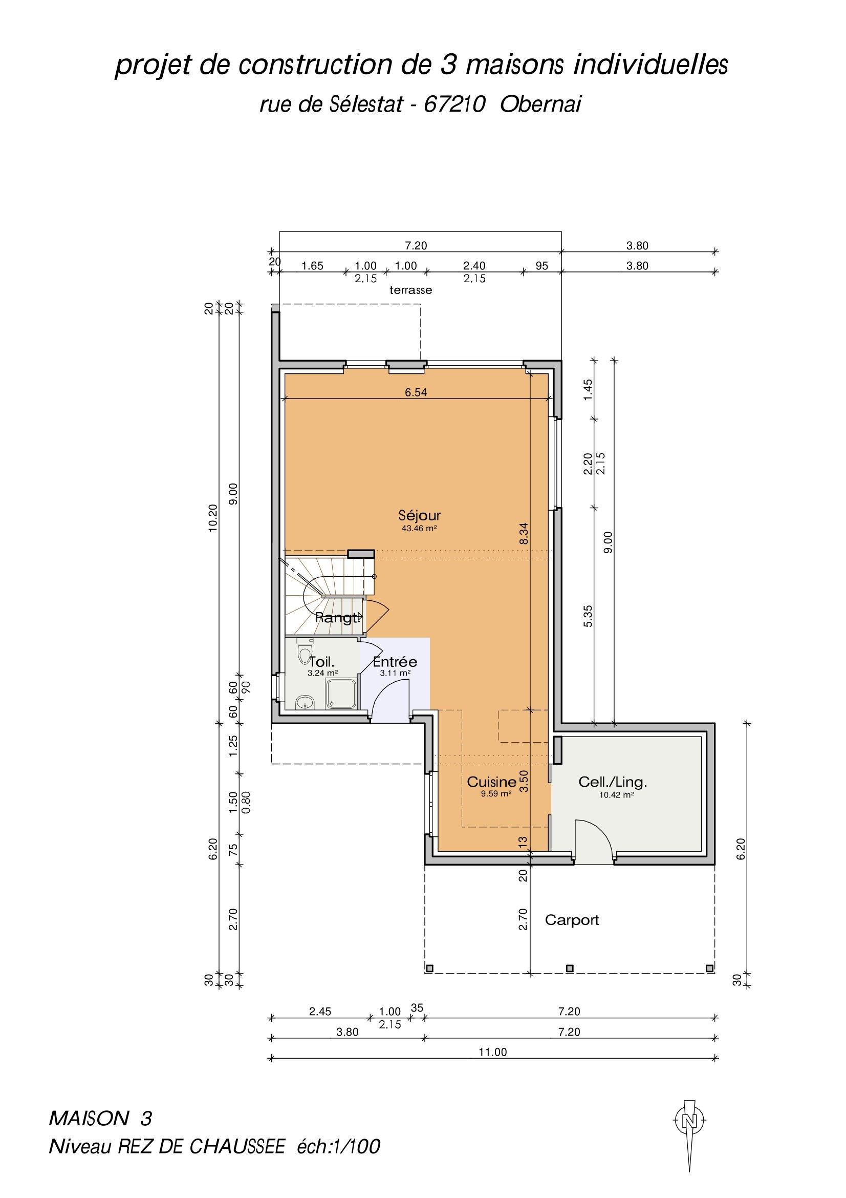 Elle se composera d'une entrée avec placard, un beau séjour plein sud donnant sur la terrasse et le jardin, une cuisine ouverte et un cellier.